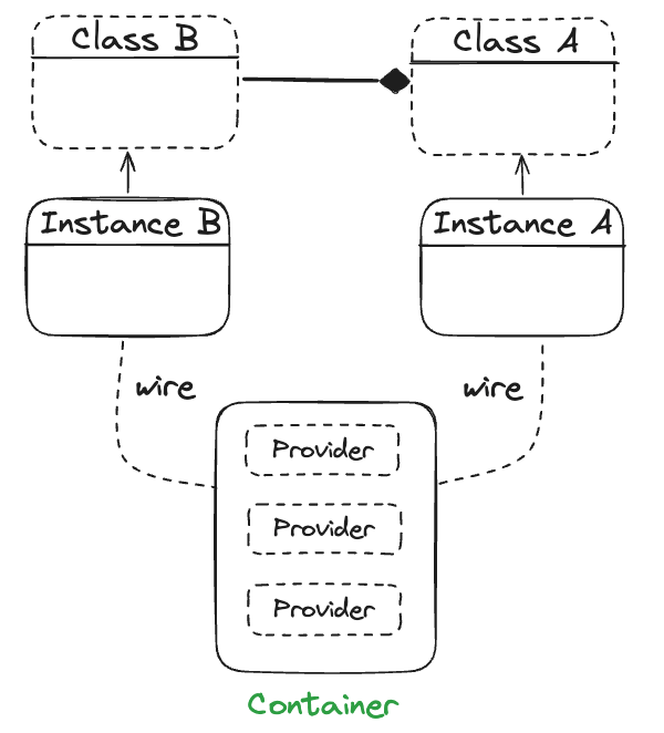 ์ด๋๊ฐ, ๊ทธ๋ฆฌ๊ณ python Dependency Injector์์ Container๋ผ๋ ๊ฐ์ฒด๋ฅผ ํตํด ์์กด ์ ์ด ์ญ์ ๊ธฐ๋ฅ์ ์ ๊ณตํฉ๋๋ค.